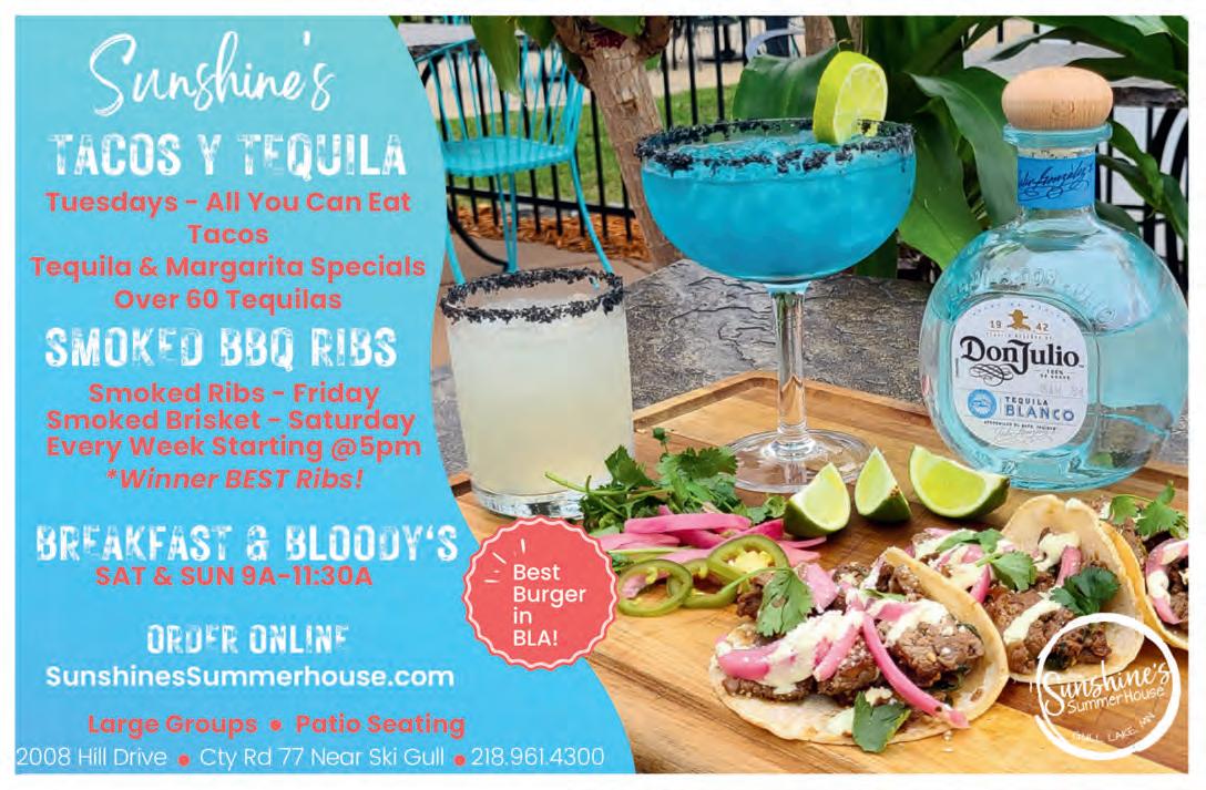 Tequila sunrises and sunsets: Fresh made margarita specials are always available at Sunshine’s, home to over 60 different tequilas! Try the Sunshine Margarita, it pairs great with all you can eat tacos on Tuesdays!