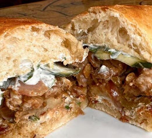 Pairing: A light beer would be best as this is a hearty sandwich.