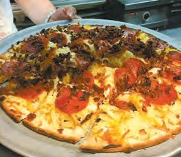 More pulled pork: If you’re craving pulled pork, Rafferty’s Feisty Pig also has heaps of smoked pork along with smoked bacon, red onion, pickles, jalapeno peppers, mozzarella, cheddar cheese with a bourbon molasses sauce. It’s garnished with green onion.