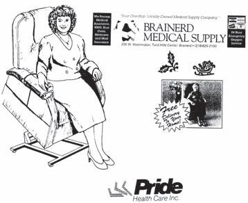 Cover Story this week Like us on Facebook to receive info and specials at Baxter Country Kitchen Guest Check on guest checks totaling $18.00 or more (Before Tax) Coupon Exp. 5/24/15 Not valid with any other offers or discounts. One coupon per table, per person, per visit. No cash value. Customer pays all applicable sales tax. Valid at Baxter location only. Off $3.00 $1.00 CAFÈ STYLE BEVERAGES Lattes, Mochas, Cappuccinos, Specialty Co ees, Gourmet Hot Chocolate Not valid with any other offers or discounts. One coupon per table, per person, per visit. No cash value. Customer pays all applicable sales tax. Valid at Baxter location only. Coupon Exp. 5/24/15 Off www.BAXTERcountrykitchen.com 7788 Fairview Rd, Baxter 218-829-1739 001244790r1 Sunrise & Shine Menu! From $4.29 Monday - Friday 6-10 A.M. REAL Cappaccino, Latte & Hot Cocoa “Your One-Stop, Locally-Owned Medical Supply Company.” FREE Delivery in our service area! 8-5:30pm M-F, 9-12 Sat. 206 W. Washington, Tyrol Hills Center Brainerd 218-829-2100 BRAINERD MEDICAL SUPPLY We Process Medical Assistance, Medica, Blue Cross, Medicare and Most insurance. 24 Hour Emergency Oxygen Service PRIDE LIFT CHAIR Valuable Coupon $50 OFF NICE SELECTION OF COLORS AND STYLES Valid With Coupon. CASH sales only. No other discounts apply. Expires Saturday, May 16, 2015 Valid With Coupon. CASH sales only. No other discounts apply. Expires Saturday, May 16, 2015 FOUR WHEELED WALKER $20 OFF Valuable Coupon with Seat and Braking System, variety of styles, sizes, colors and options available. 001234272r1