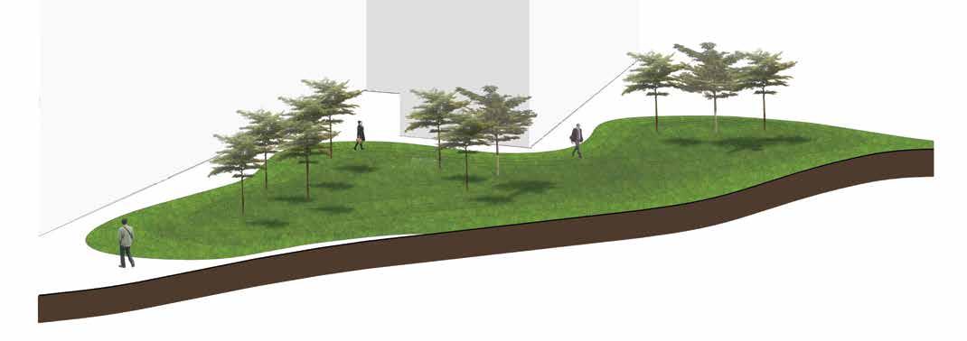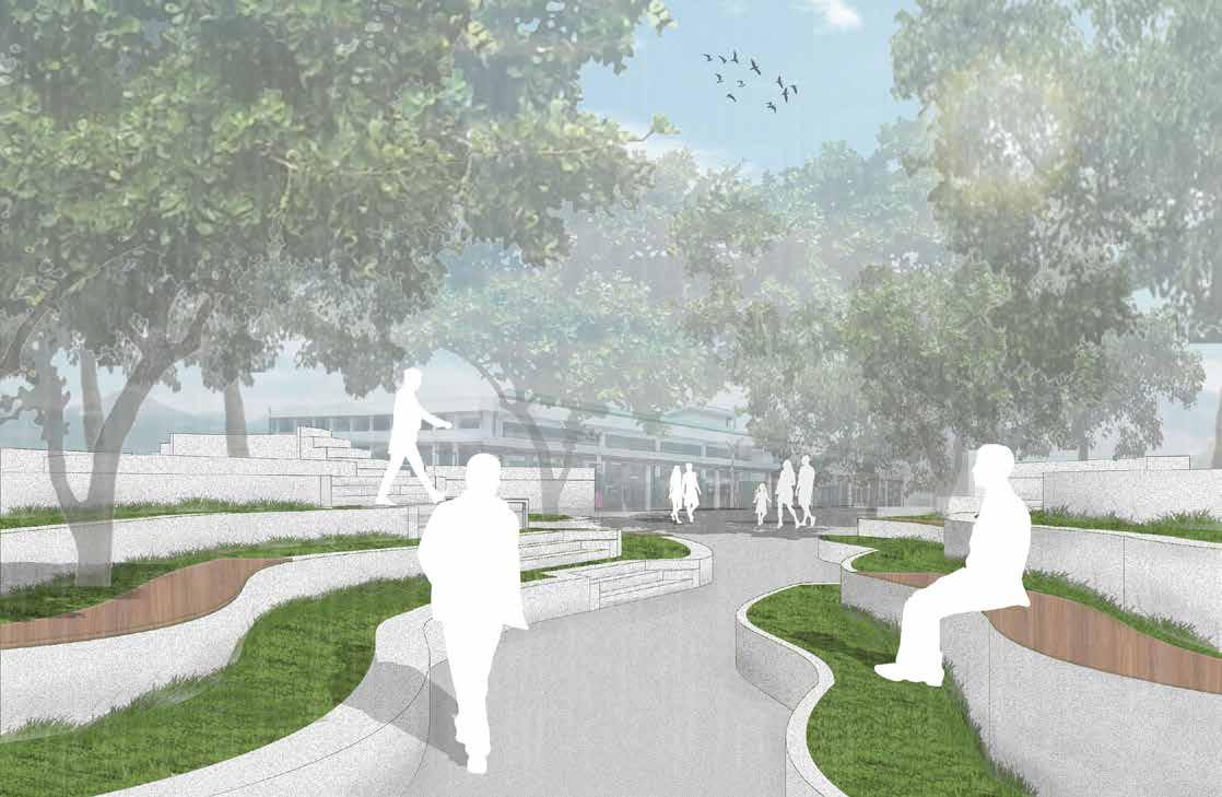 Shade Trees Seating Areas Extended Lawnscape Stream flow Bridge New Shade Trees Original Trees Campus Gathering Space River CAMPUS Natural Forest Area Removed to connect Green Spaces Maintenance Area moved Space Sit-out Areas Extended and Expanded New Trees for Shading and Enhance Woodland Expanded Green Open Space Expands and Connects into College Campus BUILDING MAINTENANCE C R E E K Forested Area 153rd STREET 153rd STREET PARKING MAINTENANCE MAINTENANCE BUILDING Bridge over stream Create Entrances from C R E E K Forested Area