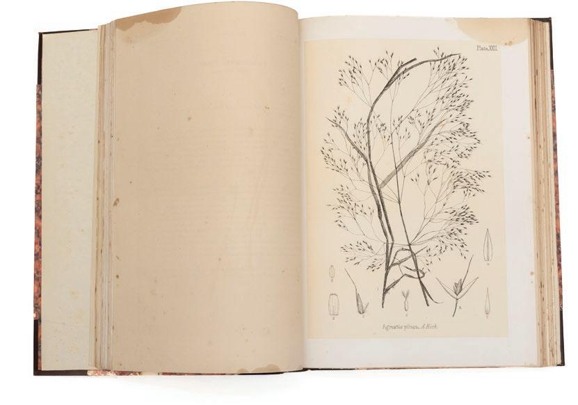 First Edition, Thomas M’Lean, London, 1847. Folio, 58 x 39.5cm, illustrated with 60 hand coloured lithographic plates, frontis after Angas, W. Hawkins, Louisa Hawkins and J. W. Giles, dedication to Prince Albert, subscribers, preface and general remarks. Rebound half brown tooled calf and cloth covered boards, 6 raised gilt decorated bands, 7 compartments with title, author and date to 2, 4, and 7, frayed E/s, new EP/s, frontis heavily restored, plate XIII repaired tear, plate XIV small tear to lower edge, plates XXIX & XXX repairs to lower left corner and left edge and text page with repaired tears to all edges. Some discolouring, minor FX, otherwise bright and crisp plates. POS and date to top right of title page. Ref: G Bagnall 114, Hocken 129.