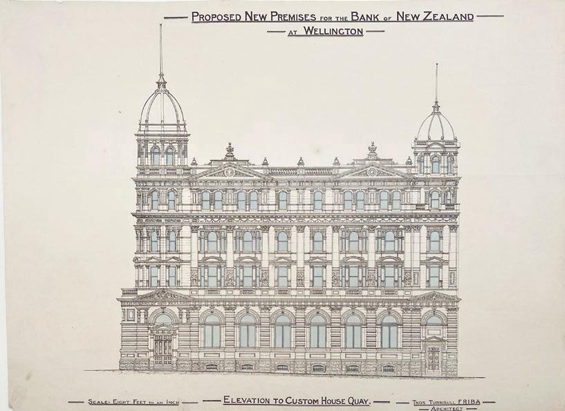 Set Of 9 Circa 1912 Architects Drawings for Proposed New Premises for the Bank of New Zealand at Wellington, Designed by William Turnbull for Thomas Turnbull, Architects, all hand coloured, unframed, some with edge splits, generally sound,.54 x 71.5cm