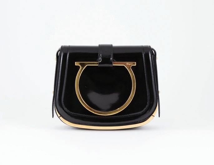 Ferragamo Big Logo Crossbody Black Patent Leather Bag 15cm x 18cm