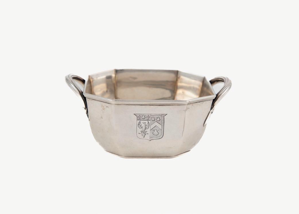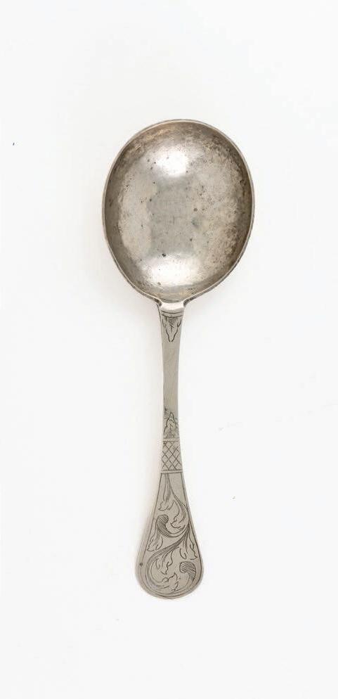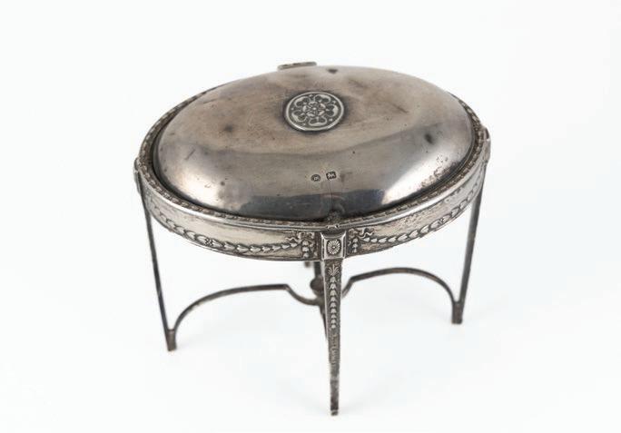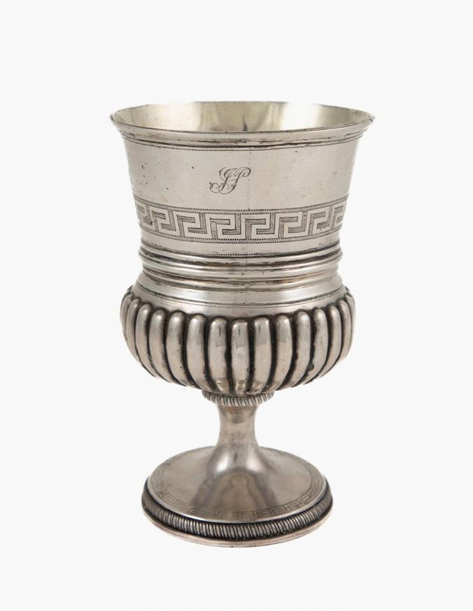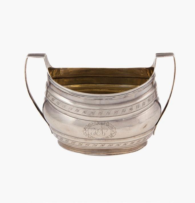 Geo III S/S Cream Helmet traditional form with fluted rim and handle and engraved bright cut decoration, London 1801, approx 90 grams