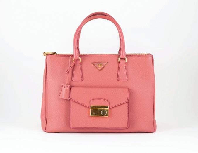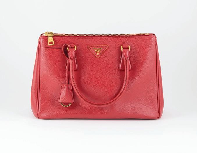 Tote Bag in tan coated canvas and red coral soft grained calf leather texture lower trim, 35 x 40cm complete with dust cover