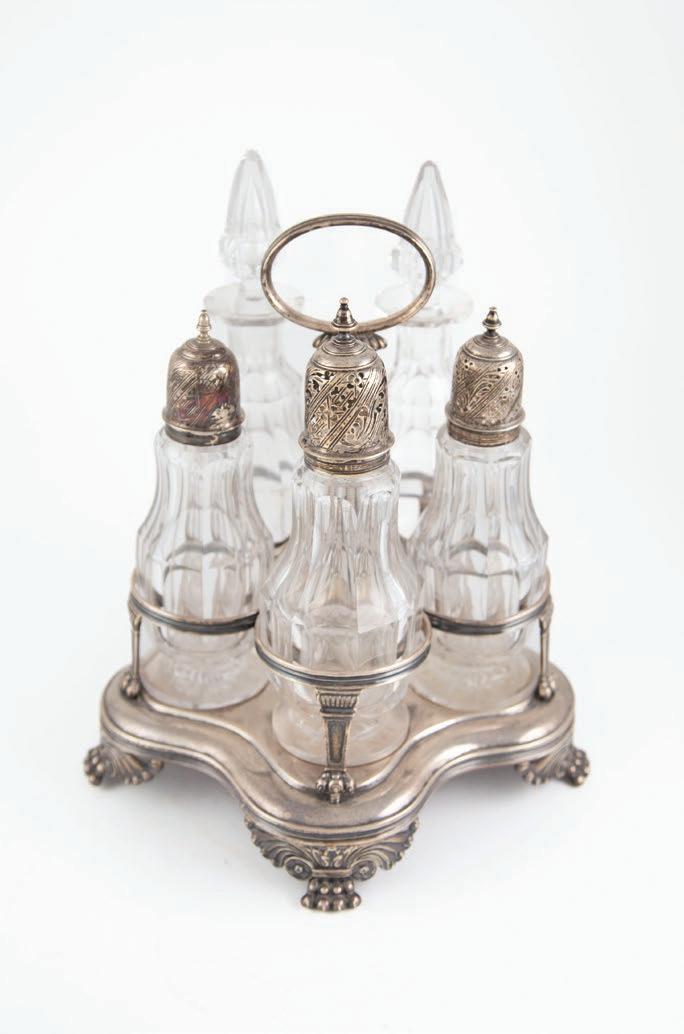Composed S/S 3 Piece Circular Cruet Set comprising mustard pot and pair of pepperettes, together with a small S/S photo frame, S/S napkin ring, S/S miniature pepperette, also a s/plate tankard and mustard pot, approx 178 grams