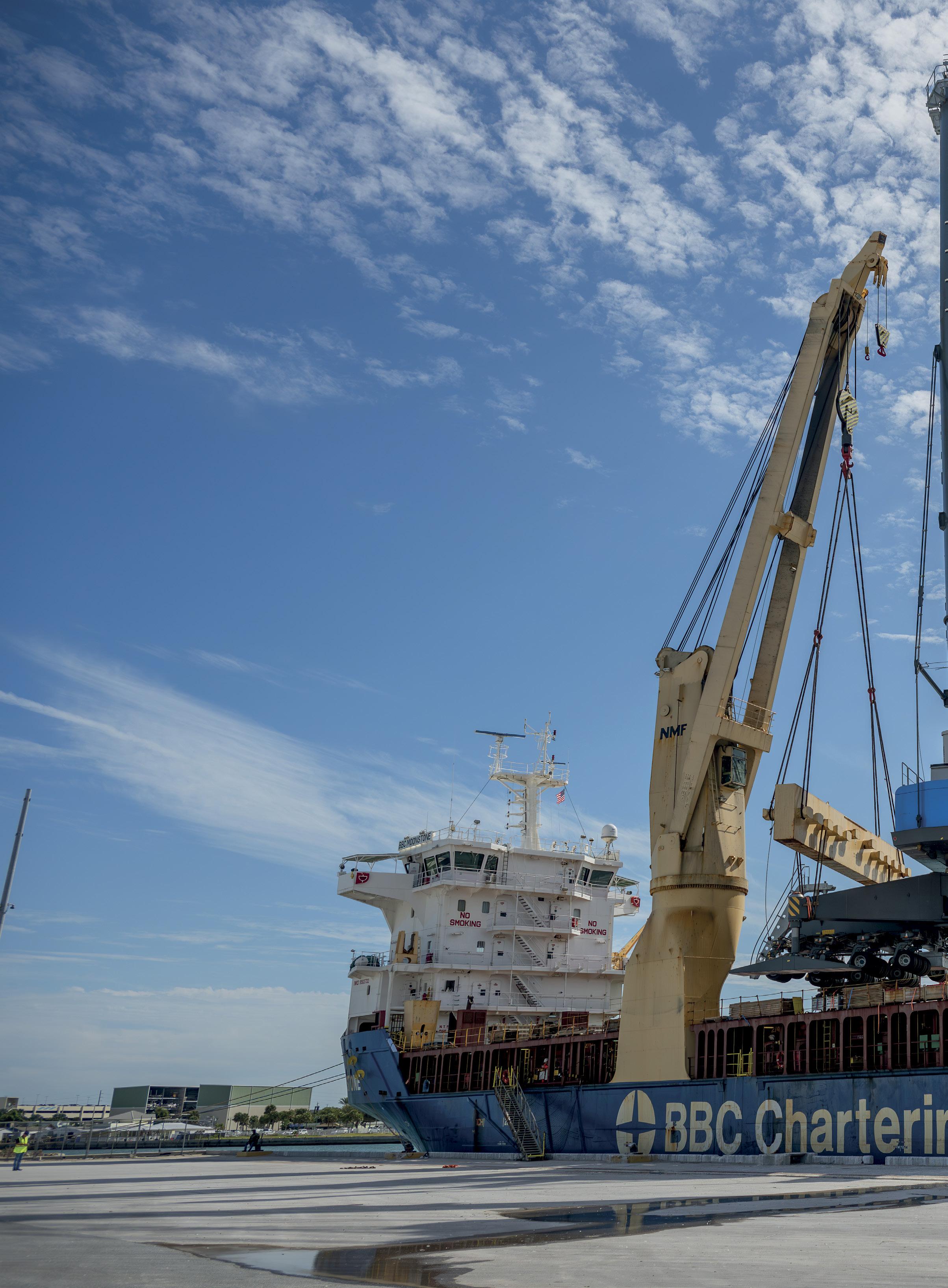 “Sailings have commenced, and the type of cargo ranges from steel products, oil and gas equipment, wind and power project components, plant and machinery, cranes, ESS (energy storage systems) for solar and EV plants, yachts and SOCs (shipperowned containers),” Frere-Smith said.