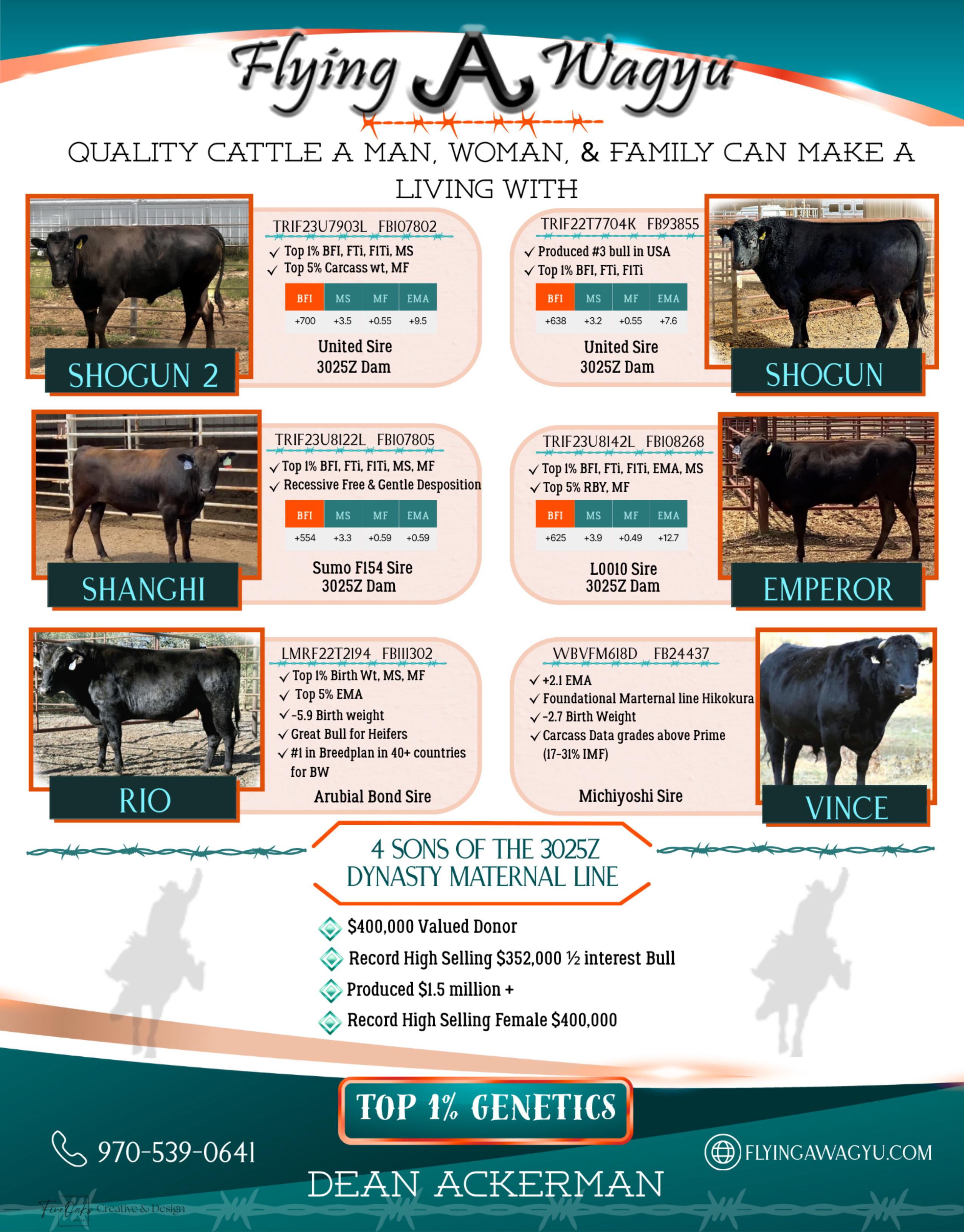 Well, I told you so! In only one year since that ramble from your sales event host, yours truly, we can see exactly what we were talking about. In this weekends offering you will see young 2024/25 calves that have registered top 1% potential in their recent DNA test results. Examples of note; lot 64) EWG Sanada 60N is a son of Ms Akane 25, herself a sale topper ($72,000-La Roca Range) here last year as a very special Notorious daughter, with big maternal family. As well, lot 67) comes in tonight as one of the top BFI Bulls in the USA, a simple glance at the LMR Mayura 0506L cow tells the story. How about Lot 58) Infinity Starwalker W11, we need only look at his dam the famed “Dream Cow” She was the Saturday sale topper ($60,000) here last year. Another one lot 57) this weekend Wackel Sammy 321B, his dam comes from the full sister to the Dream Cow, additionally his ¾ sib or better described as full brother in blood same female line sold for $105,000 Big Texas. Lot 56 “Sarge” note the maternal family, the Synergy developed exceptional “Chiyotake” line coming from the Goorambat J0338 female (of which there are several on offer this weekend). Of course we have Lot 2 Wyndford Boni 417M, a full sister to the ($215,000- Black Jack Ranch) standard setting 413M who just debuted in Big Texas, look closely at the bottom line and you will see the Y09 cow, yes, we just saw her in the pedigree of Lot 64 through that Akane 25 dam, that we started off this conversation with, and we could go on and on with this field.