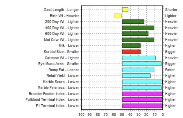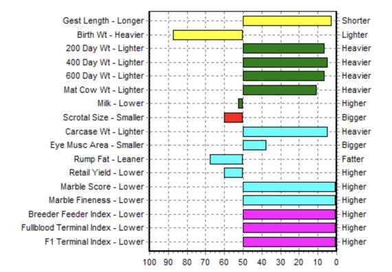 GL: Gestation Length EBV (days) is based on AI records. Lower (negative) GL EBVs indicate shorter gestation lengths which generally relate to lighter birth weights and easier calving.