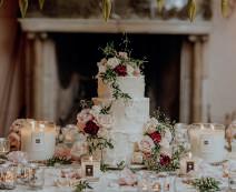 It didn’t take long for the couple to succumb to the romance of Trevenna. “We loved the natural rustic charm, the beautiful barns with so much character, an abundance of views and soft twinkly lights,” says Laura, who decided on a colour scheme of soft blush tones and greens to tie in with the beautiful Cornish countryside. “As we were getting married in October, we wanted it to feel cosy and autumnal yet still light and bright, and I think the pink touches helped to do this.”