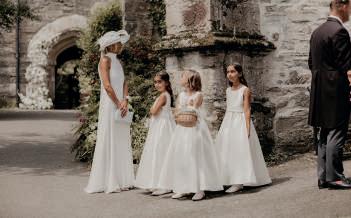 The entertainment was a key priority for the couple, who arranged children’s activity packs, outdoor games, a caricaturist and clayzer to keep guests of all ages occupied during the reception. Food was another highlight, with guests tucking into dishes such as brie, Serrano ham and cherry tomato bruschetta, slow-roasted pork belly, curried cauliflower risotto and slow-braised brisket of beef rounded off with salted caramel cheesecake and raspberry posset.