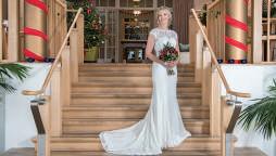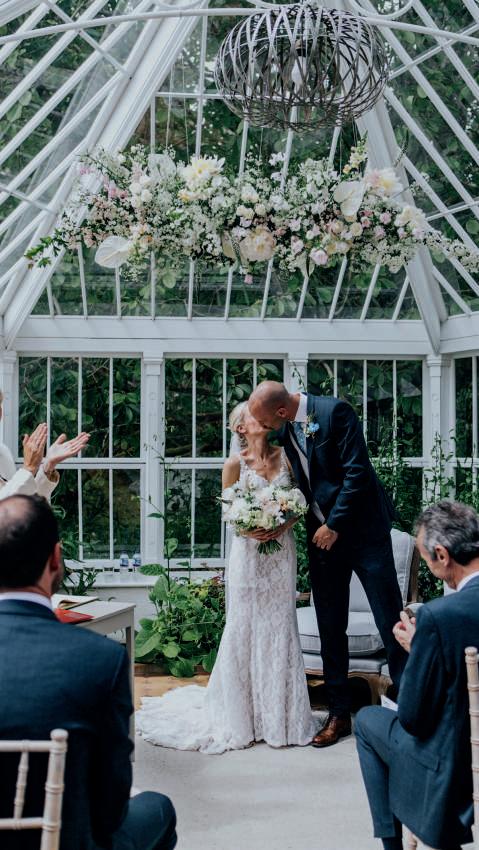 The light and airy Garden Venue, with its floor-to-ceiling windows, allowed the couple to enjoy the beauty of the natural surroundings without worrying about the weather as they exchanged vows. “I walked down the aisle to an instrumental version of Wildest Dreams by Duomo,” says Laura. “I had been listening to this song in the months leading up to the big day, picturing our wedding, and it really helped to calm my butterflies. The sun dappled the room and clouds gently rolled across the moors outside; it was very picturesque and the most perfect backdrop.”