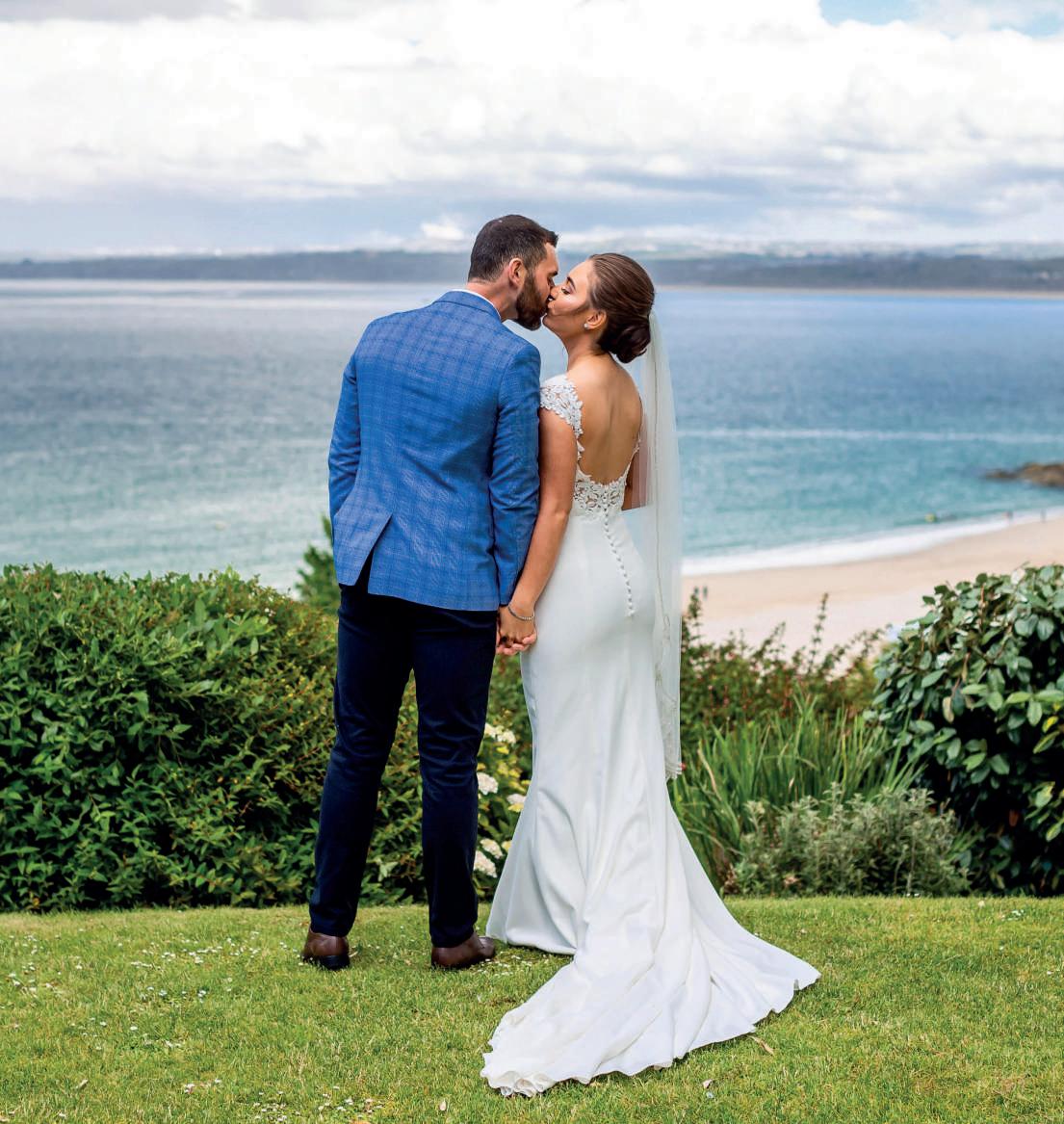 Planning a summer wedding for the following year, the couple chose to marry in Fowey Church, as Noah’s parents had done. “Noah’s father even wore the same suit to our wedding!” she says. Belonging to Christina’s family, Carlyon Bay Hotel made the perfect coastal setting for the weekendlong celebrations, which kicked off with a Friday golf competition, beauty treatments and barbecue at Noah’s family restaurant, Sam’s on the Beach in Polkerris. “At the end of the evening there was the most stunning sunset and spectacular fireworks from the pier!” says Christina who recommends a pre-wedding gathering. “This enabled us to speak with all our family and friends before the big day which then meant we got to spend our wedding day stress-free and enjoying one another’s company with ease,” she says.