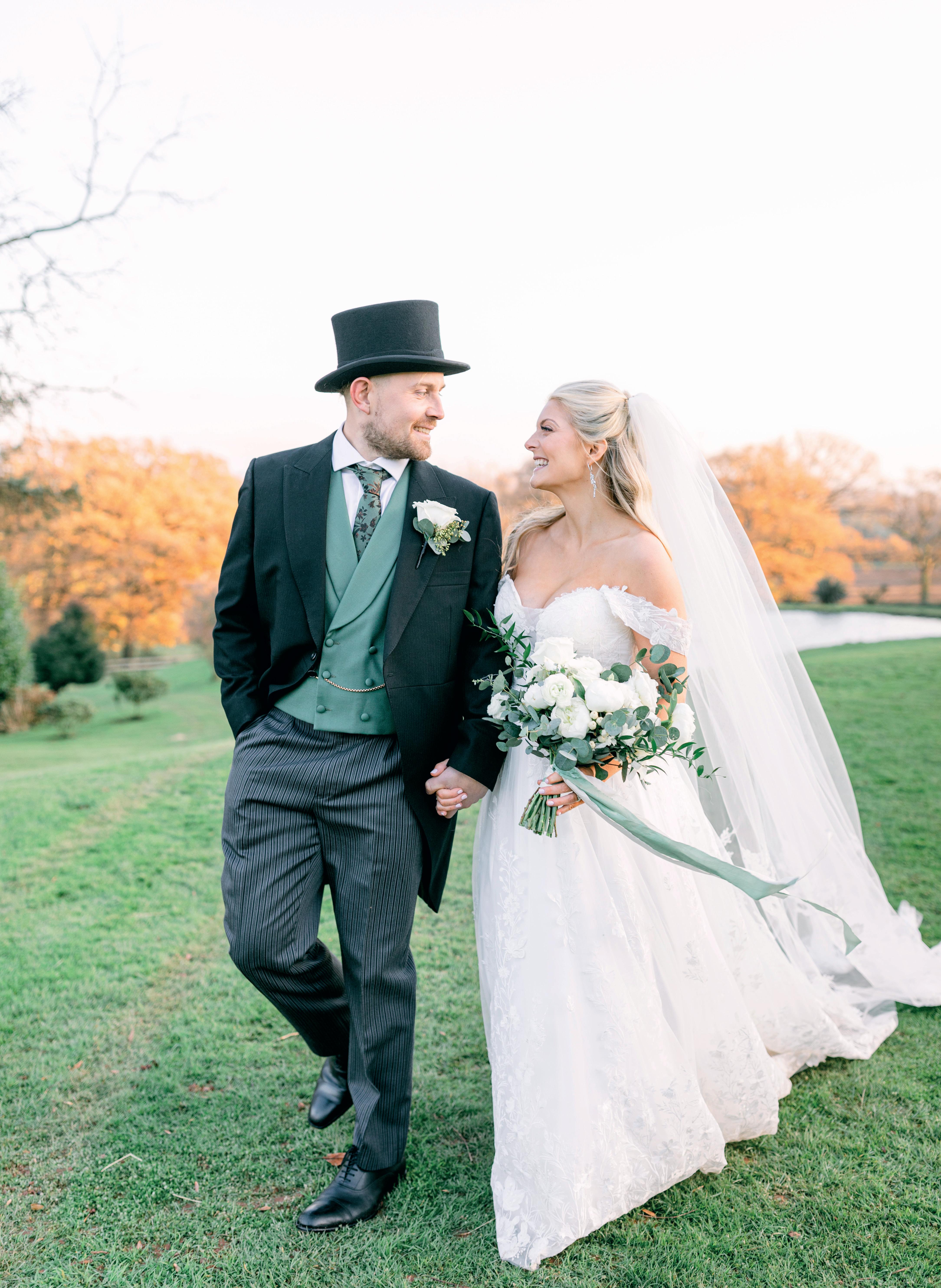 With their love story officially beginning on New Year’s Eve 2015, New Year’s Eve was the perfect wedding date for the couple, who chose the Hunters Moon, Grace’s family’s Georgian country house hotel in Sidmouth, as the setting for their “classic Hollywood glamour” celebrations.