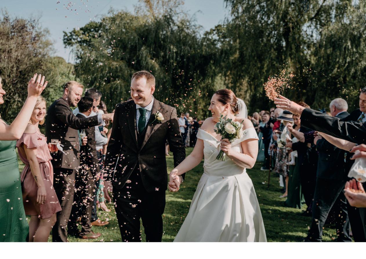After the ceremony and confetti shower, guests mingled over canapés, Pimm’s and Aperol Spritzes in the sunshine, while live musician Richard James provided a soulful acoustic soundtrack. Daisy and Oli headed off for photographs, enjoying some precious, just-married moments strolling through the idyllic grounds and wildflower meadows.