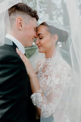 Grace and Jevon danced all night long after their eyes met across a dance floor on Christmas Eve 2015. Seven years later, the couple were visiting St Michael’s Mount during Storm Eunice when Jevon proposed amidst the wild weather. “We now call it the perfect storm!” laughs Grace.