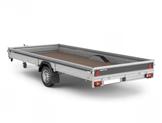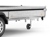 Standardserien är utrustad med kåpa och skruvtipp med sexkantsfäste. Utvalda modeller i serien finns både som inline och outline, vilket gör att du kan välja om hjulhusen ska sitta i eller utanför flakytan. Den stora flakytan gör det enkelt att lasta både skrymmande och långa föremål. Släpvagnen har bindöglor i sidolämmarna, vilket gör det smidigt att surra lasten. Det varmförzinkade chassit gör vagnen extra hållbar för tuffa användningsområden, vare sig det handlar om snöskotrar, trädgårdsarbete eller fritidsäventyr. Vagnen på bilden kan vara extrautrustad.