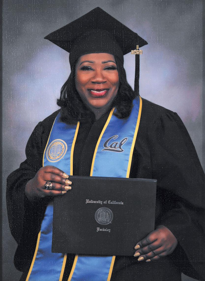 Means credits her support system for helping her get through the three-hour commute on public transportation and all the difficult classes she has mastered. In addition to her husband, Keith, her four sons, her sister and her niece, she expressed appreciation for the dean of Berkeley’s school of social welfare, Linda Burton.