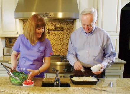 ♦ Prepare a meal. Invite a special senior over for a home-cooked meal with the family. Make it a regular occurrence on the calendar. If he or she cannot get out easily, bring a hot meal over to his or her place, instead.