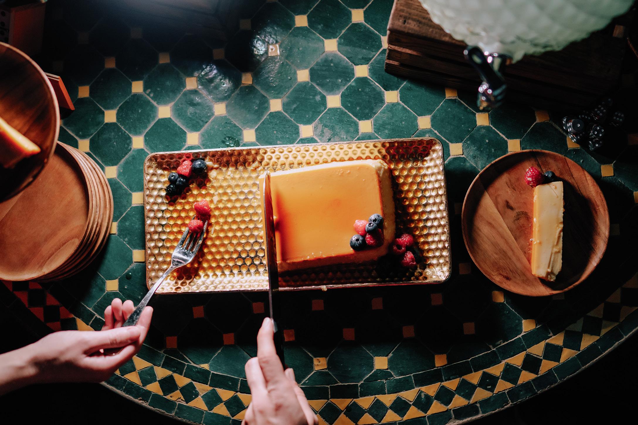 Plating: When you’re ready to serve the flan, run a butterknife around the outside edge of the flan. Place a plate large enough to handle the liquid caramel over the flan and flip it. Garnish with fresh fruits.