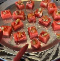 Smoked salmon paired perfectly with juicy watermelon cubes and fresh mint, while crispy tortilla crisps topped with creamy smoked chicken salad delighted guests Meanwhile, the pièce de résistance was the sizzling centerpiece of skewers, featuring succulent steak, tender chicken, and sweet pineapple grilled to perfection
