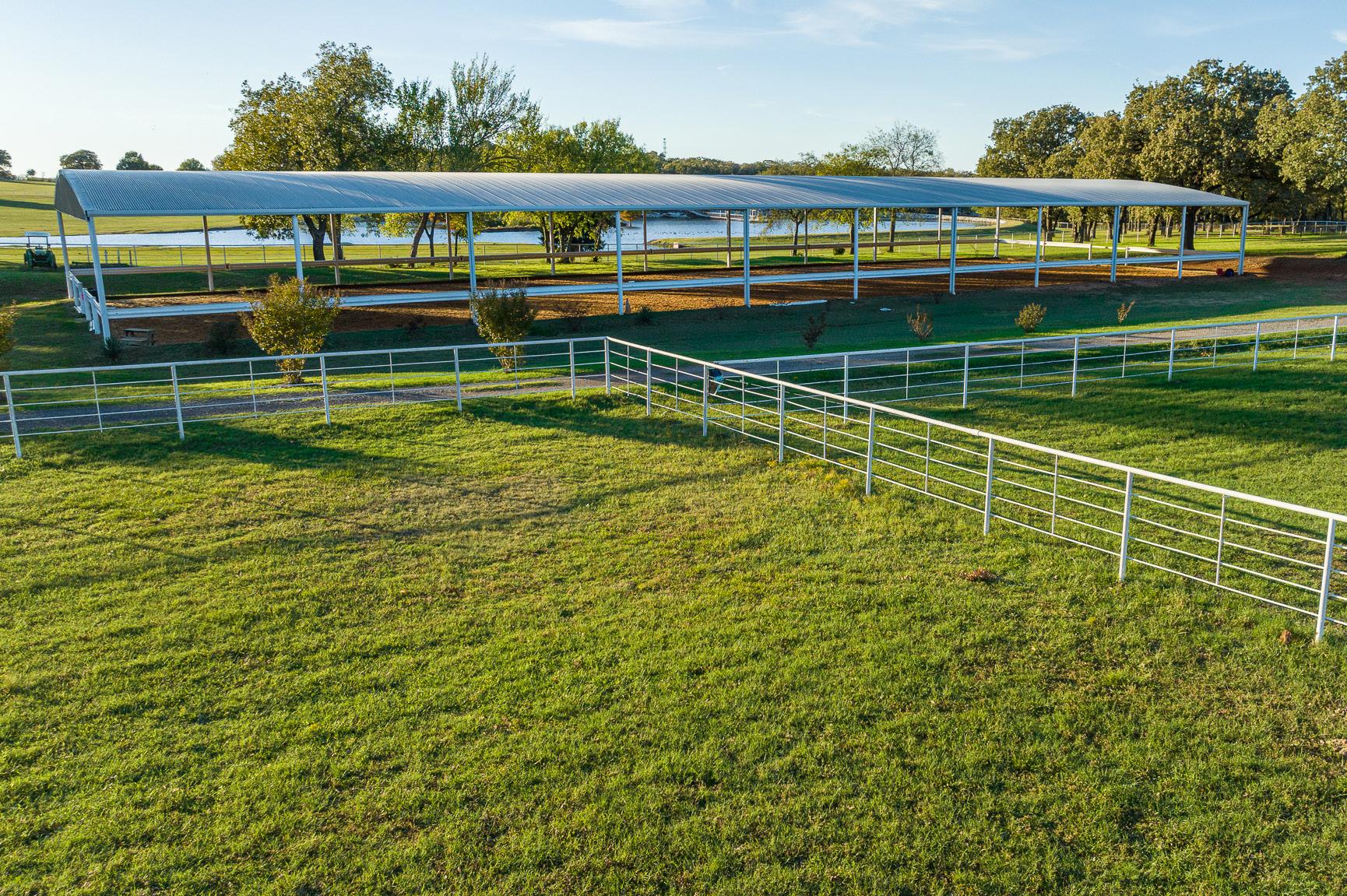 Gold Medal Farm was originally part of a 320-acre land grant of 1854, about the time the early settlers came to Flower Mound. (An original log cabin from the period is about a half-mile from the farm, restored and open today as the Gibson-Grant Historic Log House.) The current home was built in 1978 and extensively remodeled between 2006 and 2009, a project which also included complete landscaping, a new backyard area, a paved driveway, significant groundwork and the construction of the covered arena. The latter provides welcome shade, allowing it to be used throughout the Texas summers, and features GGT Footing, a substantial drainage system and a golf-course-style watering system. The farm’s 12-stall main barn was