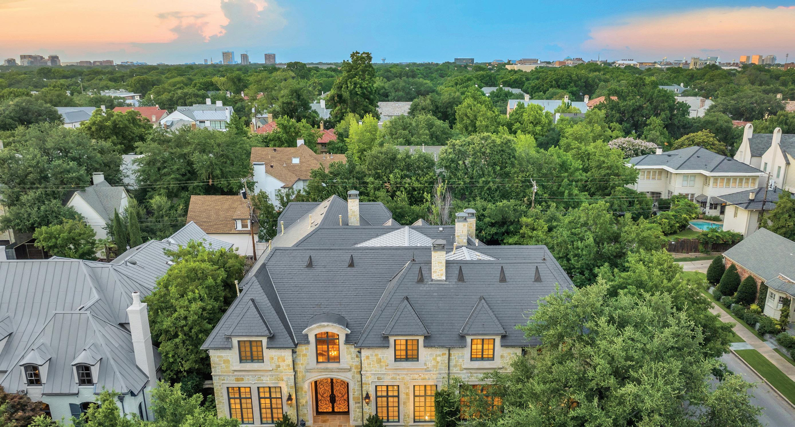 No one knows Dallas’ desirable Park Cities better. Here, a 1920s icon of Highland Park designed by one of the town’s most notable architects. For more on the Park Cities, see page 66.