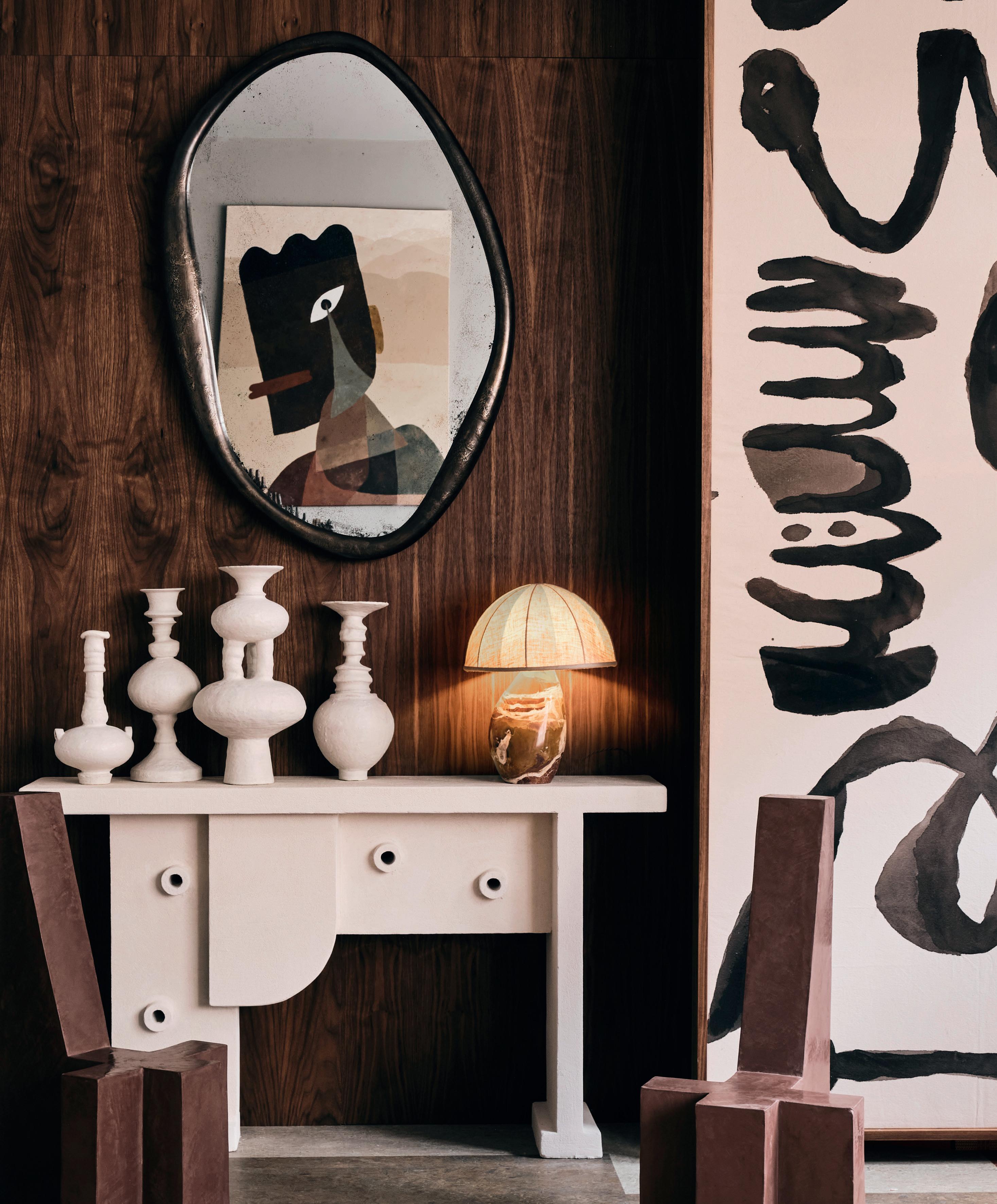 display clean lines and crisp edges. “Our design ethos is a harmonious blend of contradictions and nostalgia, deeply rooted in the richness of Indian heritage,” says Goel. “Our journey began with a love for materials and a drive for exploration, resulting in products that bring a unique aesthetic into homes. When people visit our studio, we want them to experience discovery and joy.”