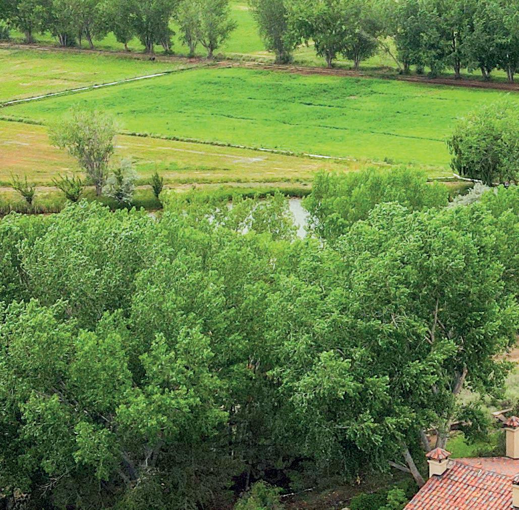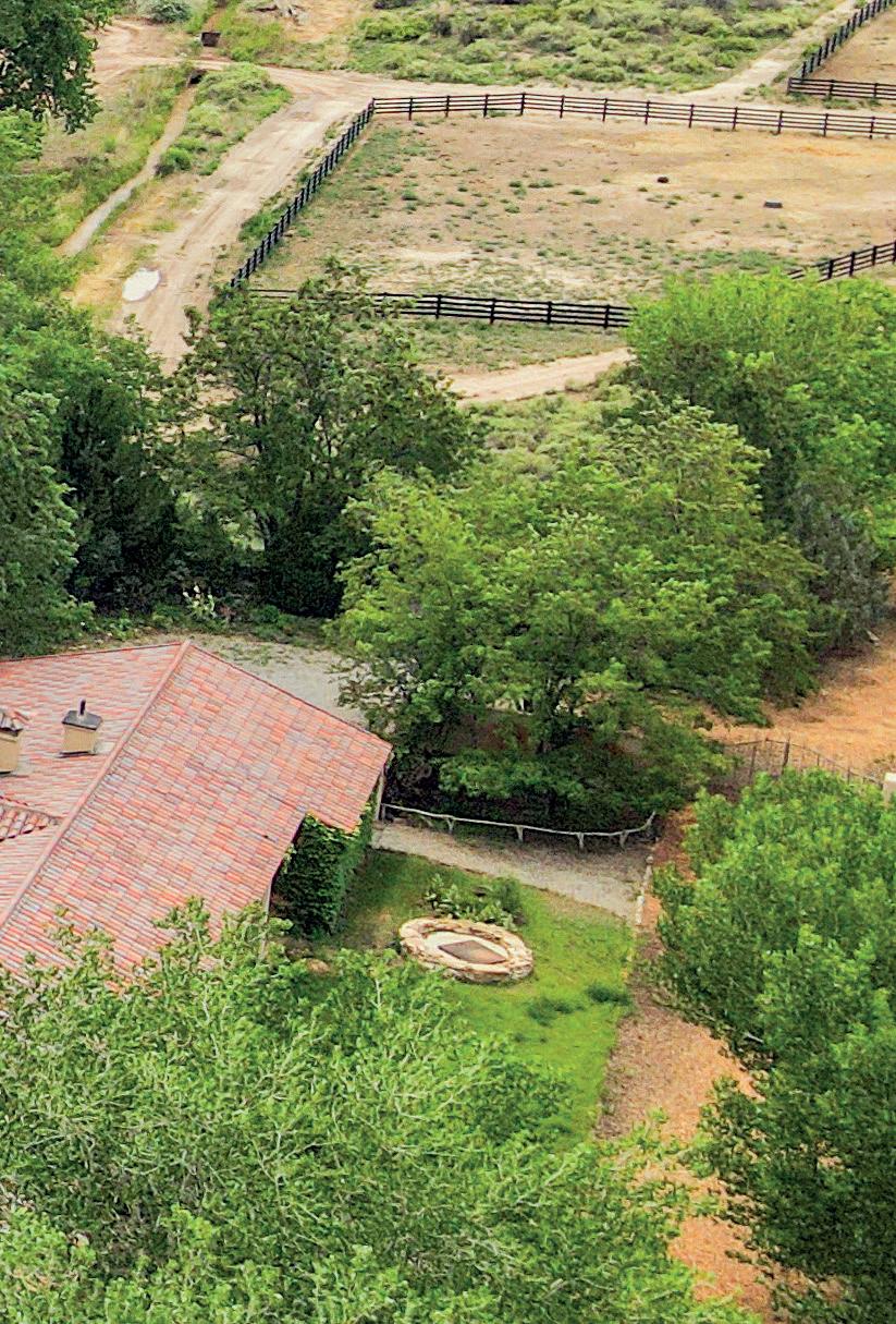 from Italy and inviting bedroom and bath suites. A local artist designed the 3,500 sq. ft., 3-bedroom, 5-bath guest house, which features a central courtyard, open plan kitchen, dining and living areas and two separate ensuite casitas surrounded by gardens. The Art Barn is a 5,700-sq. ft. cathedral-style adobe with large open spaces and includes a kitchen and two apartments. Impressive equestrian facilities include a 10-stall Morton barn with dry paddocks, in-ground waterers, a heated tack room with a bath and laundry facilities, outdoor wash stalls, six irrigated pastures, Kentucky-style fencing, and an outdoor sand dressage arena. As the state’s only Demeter-certified Biodynamic organic farm, the property has been producing medicinal herbs, alfalfa, and other forage crops.