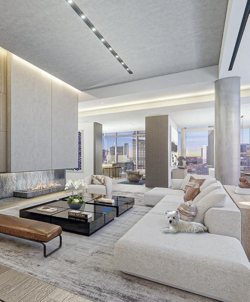 amenity terrace with an infinity-edge lap pool, fireplace and putting green; a fitness center and treatment room; a private dining room; a wine-tasting room; wine lockers; and a dog park. The building was awarded LEED Gold certification in 2022 and was named the first multifamily tower in Texas to receive WELL Certification, in 2023. hallartsresidences.com