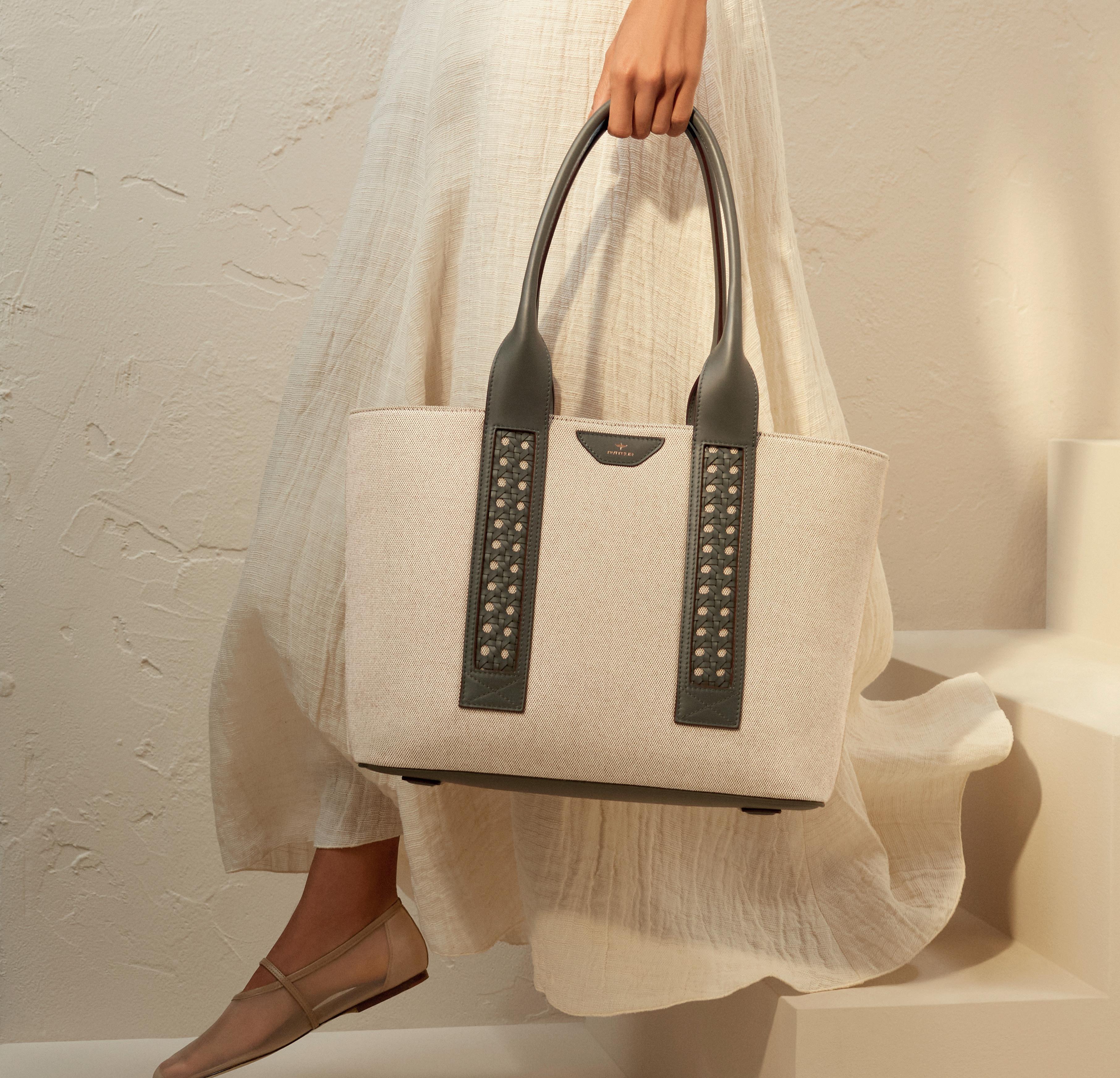 engineered with a sound-absorbing air chamber, while the handle, carved out of a solid block of Lucite, has a design patent. She has since added some 100 products to the Aviteur range. There are passport wallets, luggage tags, phone cases and petite handbags, all featuring the same intreccio leather. The signature woven pattern reappears as a detail on other pieces, too: on the straps of the boxy canvas and leather Cristallo backpack and edging the curvy cross-body Gigi Bag. Classic “Weekender” bags, various-sized pouches