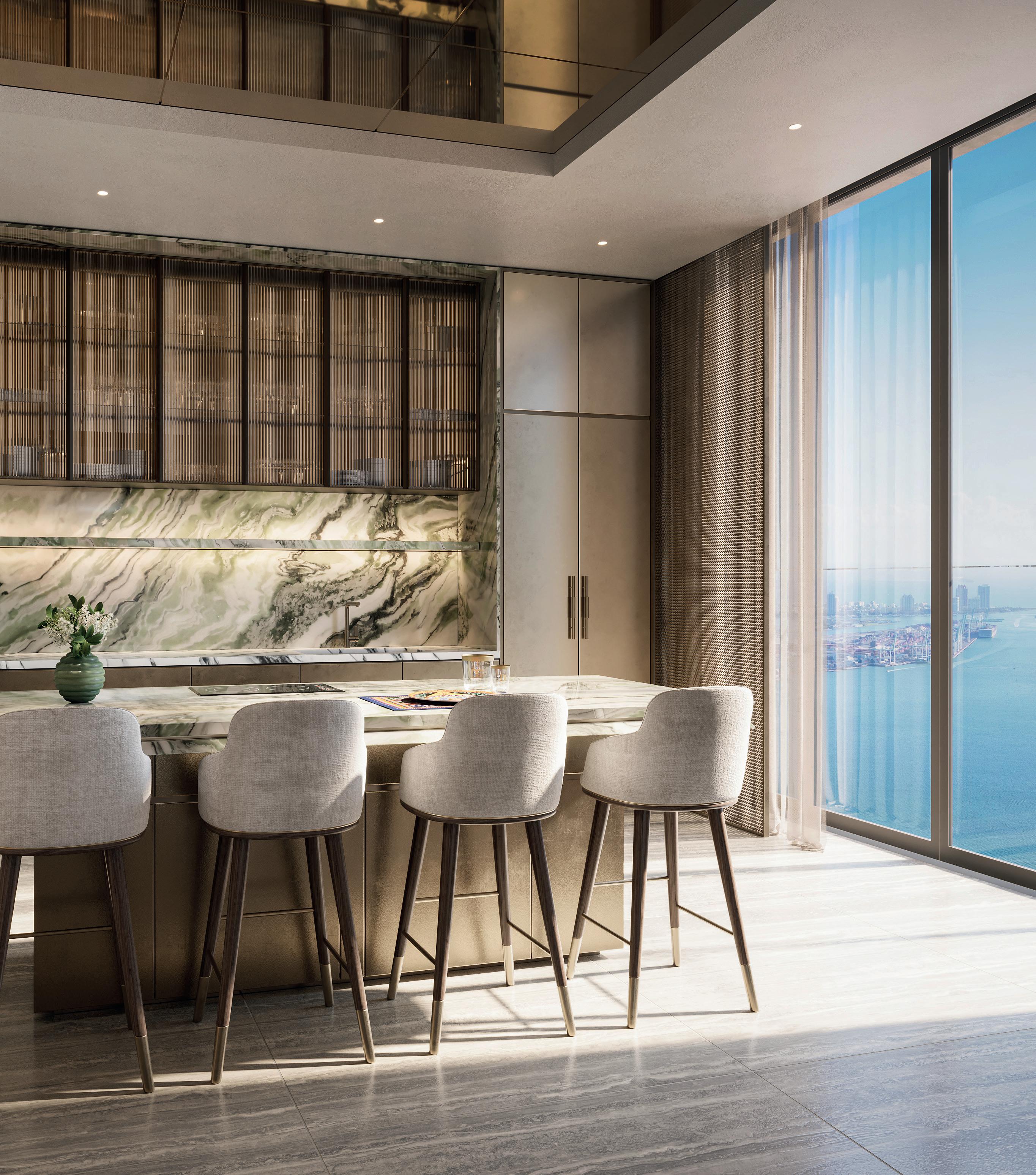 A 28-story tower in the bustling Dallas Arts District, HALL Arts Residences o ers luxury high-rise living in the city’s cultural hub. In the building’s exclusive Masterpiece Collection, which consists of 12 units spanning oors 20 through 25, each residence features unparalleled views of the downtown skyline. Every home is equipped with premium nishes including a Bulthaup kitchen system, Gaggenau appliances, Dornbracht polished-chrome ttings, wide-plank oak oors and Lutron shades.