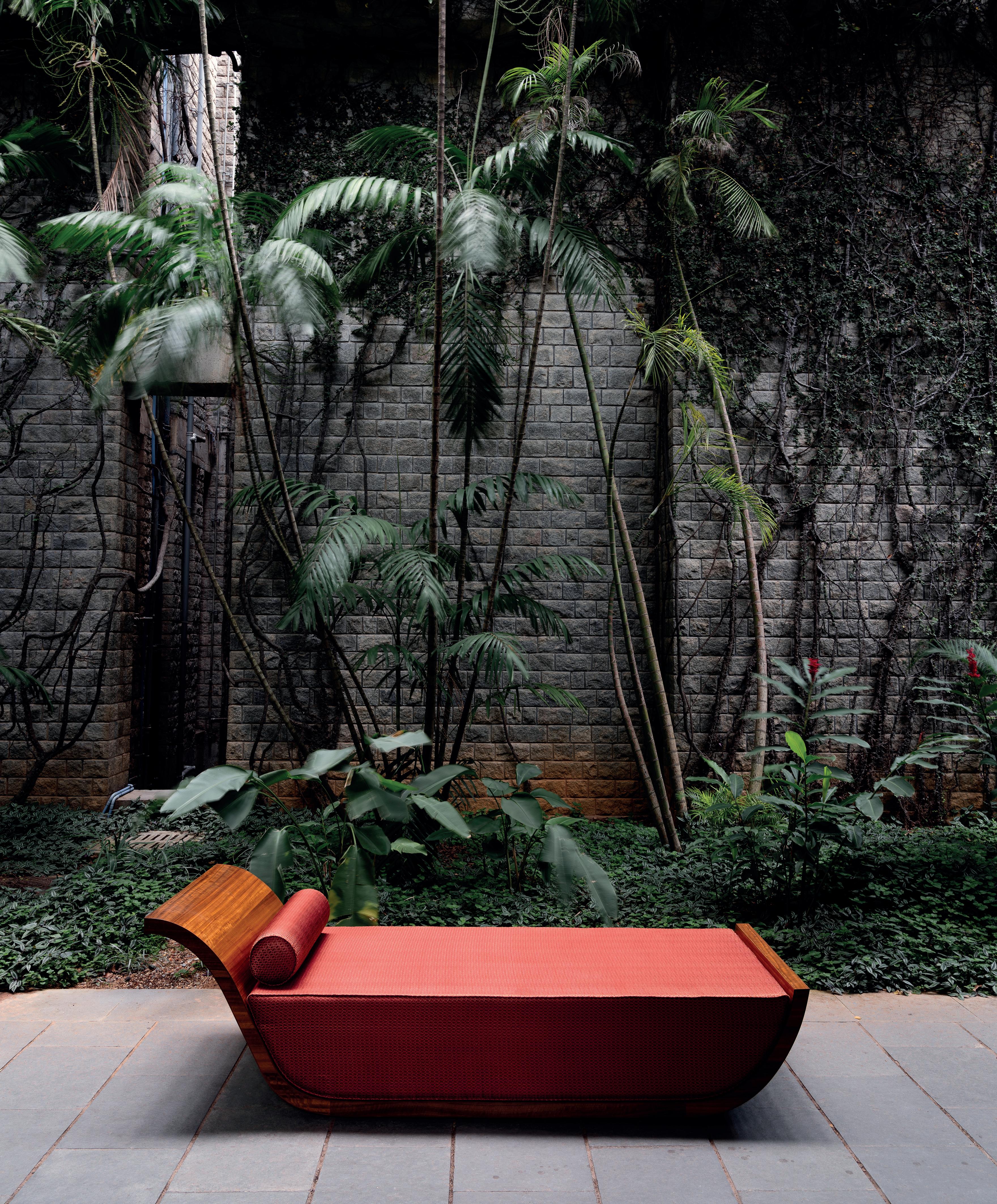 According to the authors, “deserts are laboratories for all kinds of experimentation,” where artists, designers and visionaries forge new paths within the context of the land. The book begins in Makrana, the marble capital of India, where we meet designers Dushyant Bansal and Priyanka Sharma of Studio Raw Material. We get to know their eclectic design practice by taking a glimpse into their home, which, like many of their works, is made from the scraps of nearby quarries: the walls feature the rough textures of exposed stone, a contrast to the colorful polished slabs that form irregular mosaics on the floor. Their enormous black-framed windows add a modernist touch, merging the interior with exterior.