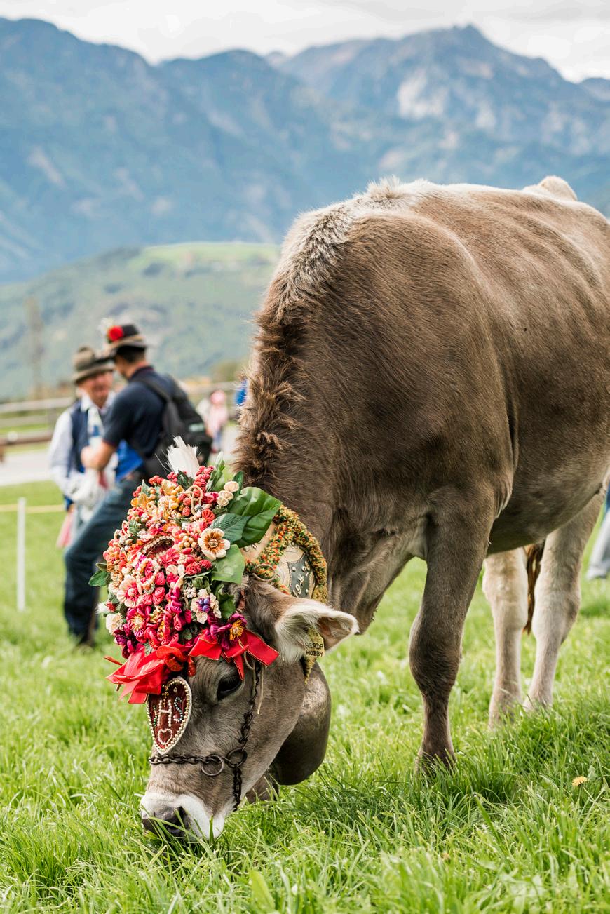 Herausgeputzt: Eine Protagonistin des Almabtriebs in Terenten stärkt sich schon mal für ihren großen Tag.