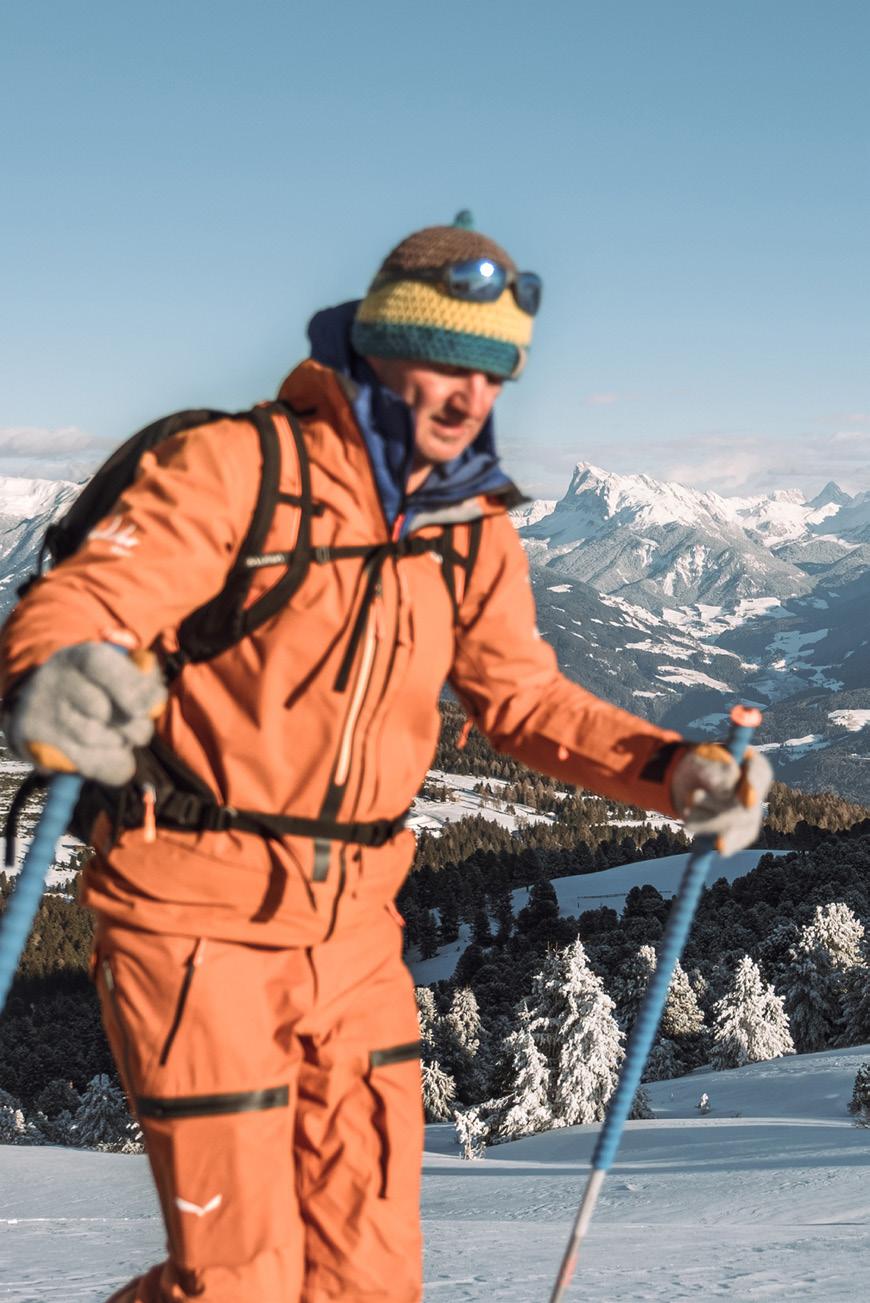 Winter auch mal slow! Zu viel, zu laut, zu rasant muss nicht sein. Der Tourismus der bezaubernd kalten Jahreszeit verändert sich. Das ist gut – und tut gut. So lässt sich das Panorama am besten genießen. Wie beim Schneeschuhwandern auf der Rodenecker und Lüsner Alm.