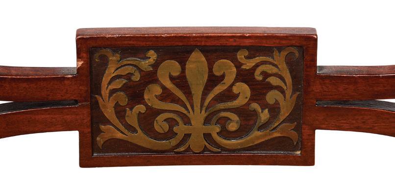 New York, possibly late 19th century, attributed to the school of Duncan Phyfe, lyre form supports, brass paw form casters, with key and detachable mahogany bookstay, 28-3/4 x 37-1/4 x 21 in., opens to 56-1/2 in.
