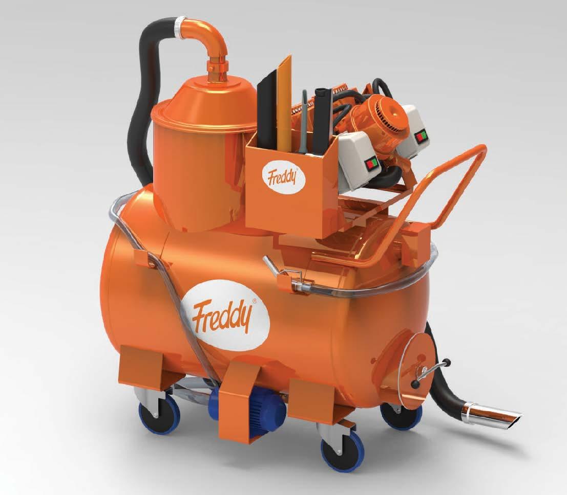Baterijsko Mark V je naš največji Freddy. Pri modelih, ki so na voljo od 500 do 1000 litrov in več, ima nagibni rezervoar za filter, ki omogoča hitro in enostavno praznjenje 60-litrske košare. Podvozje omogoča preprosto manevriranje po celotni tovarni, poleg tega lahko ponudimo različico, ki deluje na baterije, tako da je resnično brezžična, kar omogoča transport, kjer koli je potrebno.