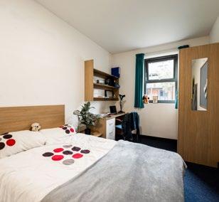 Brook Street is our budget option halls of residence. It is arranged in flats of 6 to 8 rooms with a shared kitchen diner, two shared toilets and two shared shower rooms. The rooms have single beds, desk, chair, wardrobe and chest of drawers plus a sink in each room with mirror, light and under sink storage. It is 5 minutes walk from campus.