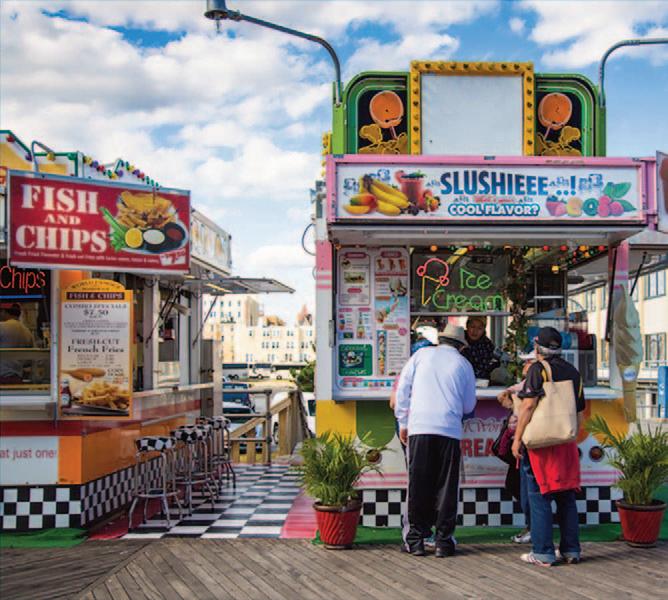 Not too far north of Cape May are the Wildwoods, that include the city of Wildwood, North Wildwood and Wildwood Crest. The Wildwoods, share a beach that runs the length of the fivemile island. Wildwood has a boardwalk that according to Wildwoodnj.com has “... 38 blocks packed end to end with shops, waterparks, eateries, entertainment and amusement piers with over 100 rides and attractions.” And there are three amusement piers and three wet ‘n wild waterparks.