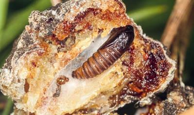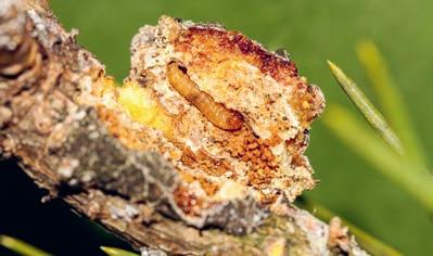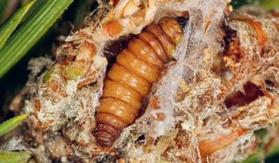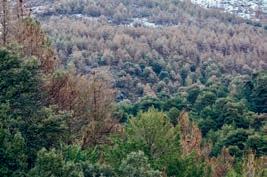 fällt, nun in höhere Lagen und somit in die Waldföhrenwälder vorstösst und dort zu völlig neuen, grossflächigen Schädigungen führt (Abb. 5c) (Hodar et al. 2003).