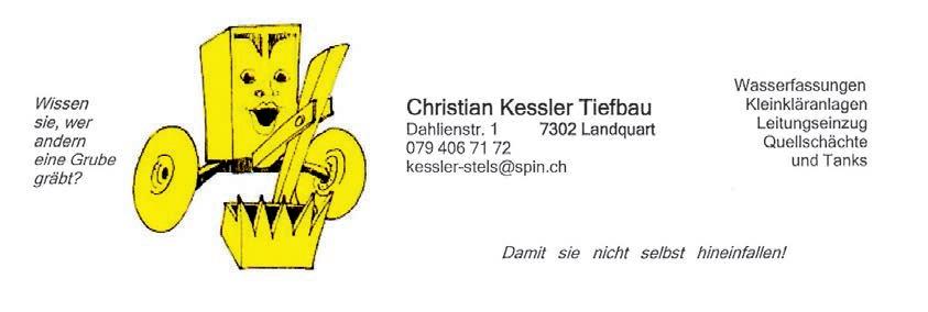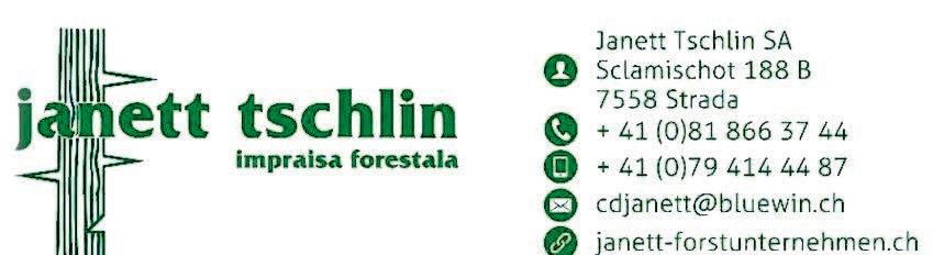 ANZEIGE casty outdoor & workwear ag Rossbodenstrasse 15 I 7000 Chur 081 635 14 38 I 078 635 14 38 info@casty-shop.ch I casty-passt.ch dein regionaler partner Kompetenzzentrum für Arbeitsbekleidung & Motorgeräte, mit Werkstatt ANZEIGE Wingertliweg 1 7204 Untervaz Via Igniu 6 7172 Rabius candinas.ch info@candinas.ch Der Partner für Wald, Transport, Fels Holzhandel Energieholz Projektlogistik Felstechnik Transport Forst