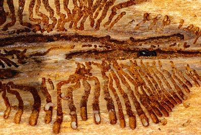 Dr. Beat WermelingerPioniere beim Holzabbau Borkenkäfer leisten einen zentralen Beitrag zum Holzabbau. So sind gewisse Pionierborkenkäferarten in der Lage, als erste Insekten in die noch intakte Rinde frisch abgestorbener Bäume einzudringen und dort ihre Brutsysteme anzulegen. Insbesondere die Rinde von Nadelbäumen besitzt zu Beginn noch verschiedene toxisch wirkende Harz- und Gerbstoffe, die eine rasche Besiedlung durch holzabbauende Pilze erschweren. Durch die Ein- und Ausbohrlöcher der Käfer entstehen jedoch Eintrittspforten für diese Pilzsporen und das Recycling der im Baum gespeicherten Nährstoffe für das Wachstum anderer Kraut- und Holzpflan-