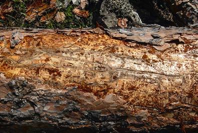 Abb. 1: Die Bohrlöcher von Borkenkäfern schaffen für holzabbauende Pilze einen ersten Zugang zum Holz. Nach dem Abblättern der Rinde infolge des Reifungsfrasses der Käfer liegt das Holz vollends frei für die Besiedlung durch holzzersetzende Pilze. (Bilder: B. Wermelinger)