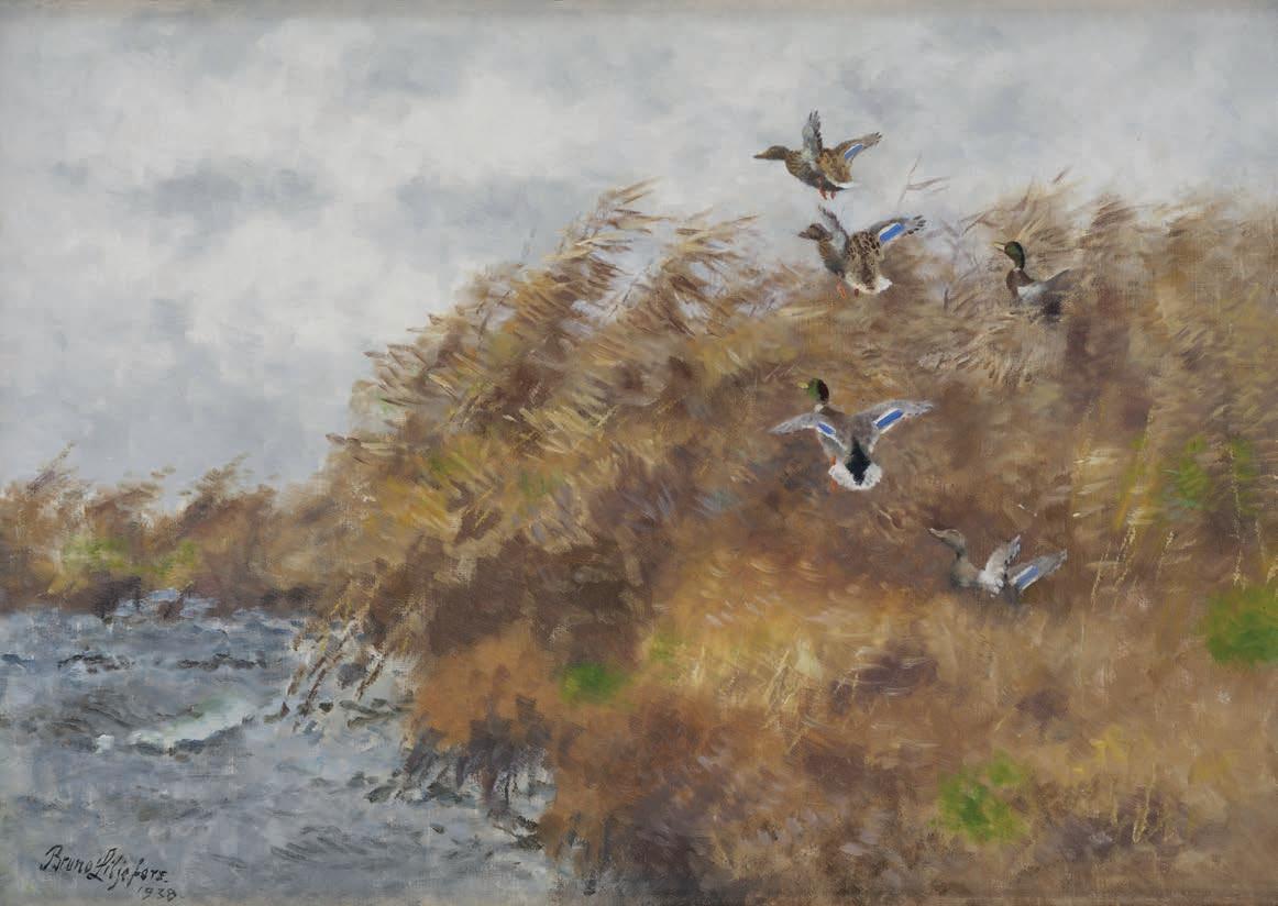 810. Bruno Liljefors (Sverige, 1860–1939) Flygande vildänder i vassen.