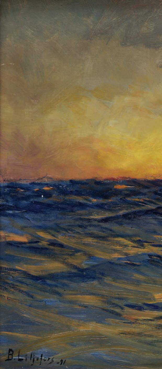 804. Bruno Liljefors (Sverige, 1860–1939) ”Hav i soluppgång”. Signerad B. Liljefors och daterad -91. Olja på duk 46 x 61 cm.