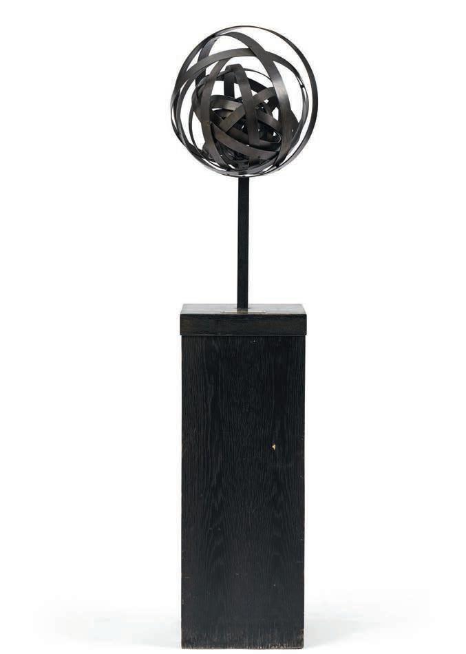 821. Arne Jones (Sverige, 1914–1976) ”Ställbart universum”. Brons och gjutjärn, höjd 66 cm (inklusive träbas 143 cm).