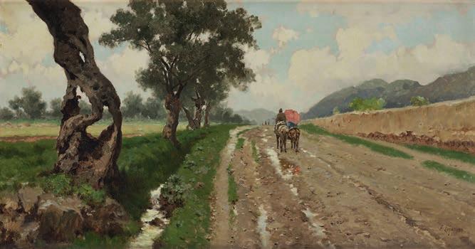 589. Karl Nordström (Sverige, 1855–1923) Hästekipage i franskt landskap.