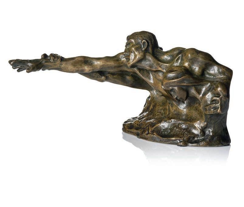 Signerad A. Jones och numrerad 97. Utförd 1947. Brons, monterad på svart sockel. Total höjd 16 cm.
