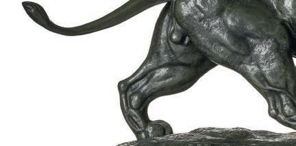 Fundicion R. Buchhass. Grönpatinerad brons, höjd 37 cm, längd 40 cm, bredd 39 cm.